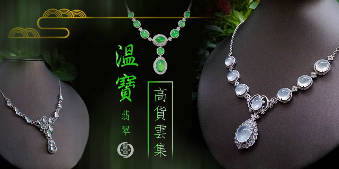 18k真金真鑽 玻璃種泛光蛋面翡翠套鍊